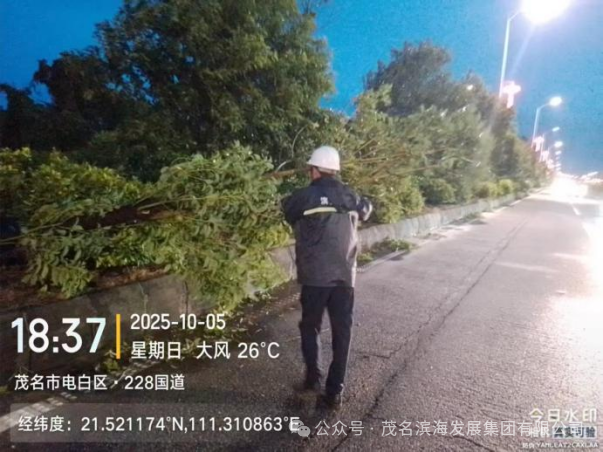 今年第21号台风“麦德姆”强势来袭,为茂名滨海新区带来严峻风雨考验。在滨海新区的部署和茂名滨海发展集团统一指挥下,集团道路养护中心抢险队(以下简称养护中心抢险队)迅速响应、昼夜坚守,在防汛防风一线构筑起坚实的“道路安全屏障”,充分彰显了高效的应急处置能力。