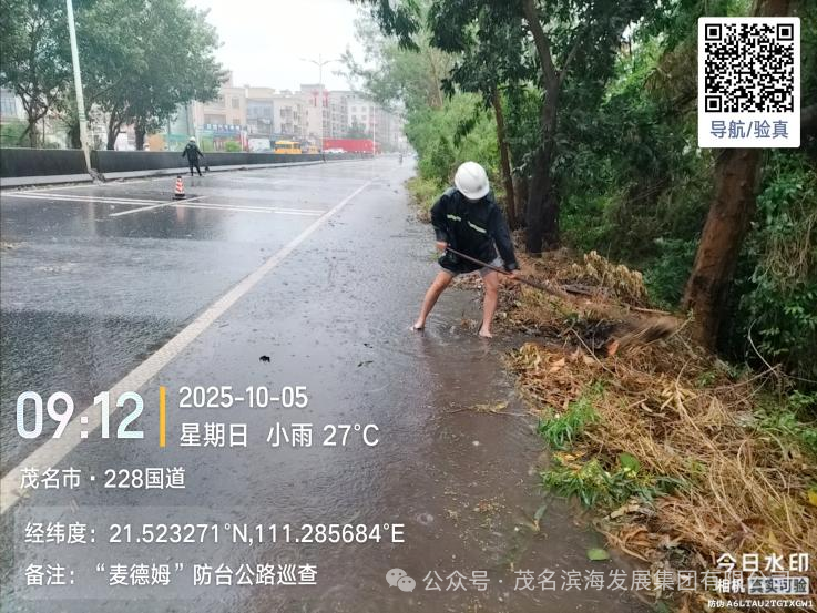 与此同时,养护中心抢险队优化力量配置,采取“兵分两路”工作模式,对茂名港大道、S291省道、辖区国道及X848县道等展开全域巡查,及时发现并疏通积水点,协同清理国道沿线倒伏树木,快速消除多处道路安全隐患,保障了道路基础通行条件。